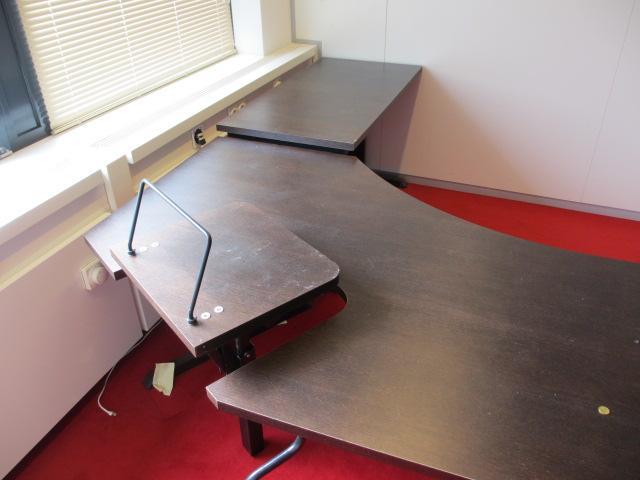 70 - 57 : 1 i.h.v. bureautafel met druppelvorming aanbouw blad en i.h.v. monitorstandaard