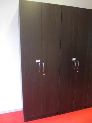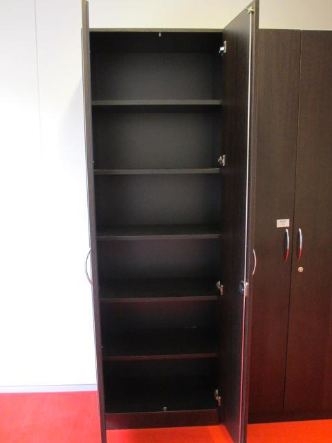 1 hoge houten 2-deurs kast (afm. ca. 75 x 230 x 40)