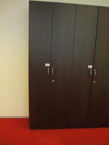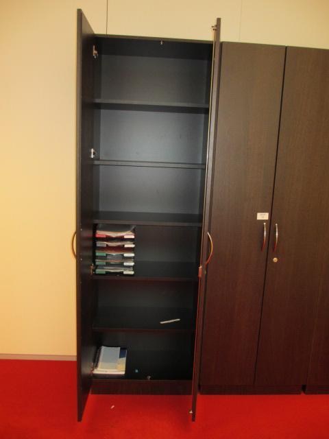 1 hoge houten 2-deurs kast (afm. ca. 75 x 230 x 40)