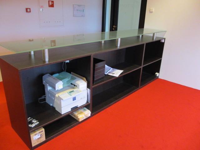 71 - 120 : 1 receptiebalie met open kasten en glazen opstand (afm. ca. 330 x 100 x 40)