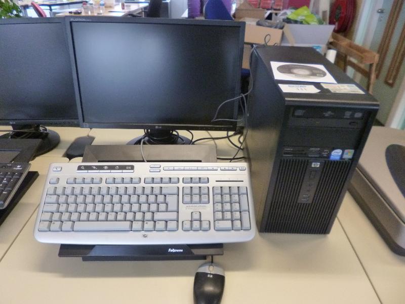 1 HP desktop pc met Dual core processor, 250 Gb harddisk en LG monitor, type E2210