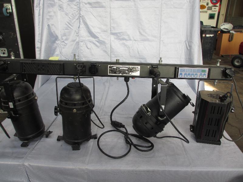 1 Lite works dimmerbalk, type PB - 4 -dmx met 3 parspots en 1 Griven theaterspot