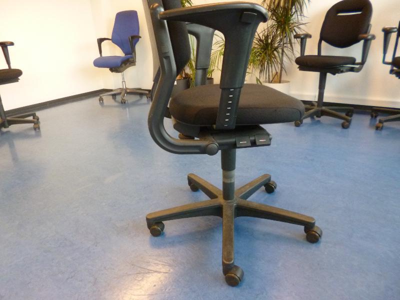 1 Ahrend in hoogte verstelbare bureaustoel met zwarte stoffering en 2 armleggers