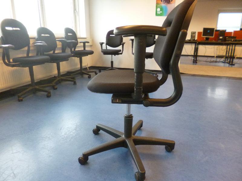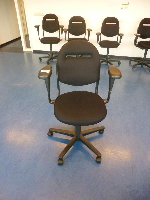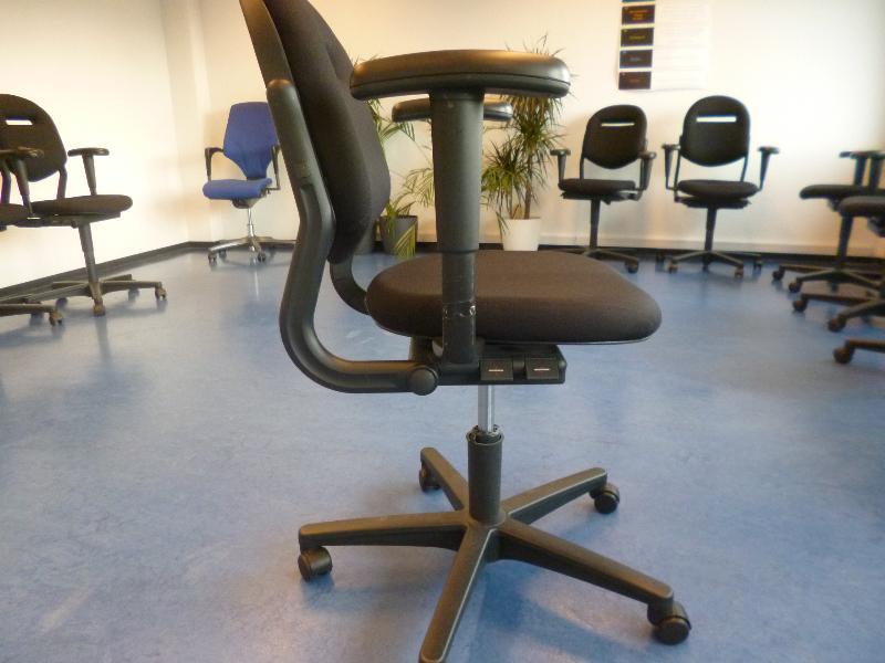 1 Ahrend in hoogte verstelbare bureaustoel met zwarte stoffering en 2 armleggers