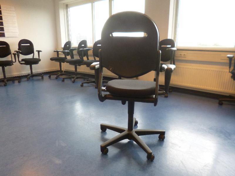1 Ahrend in hoogte verstelbare bureaustoel met zwarte stoffering en 2 armleggers
