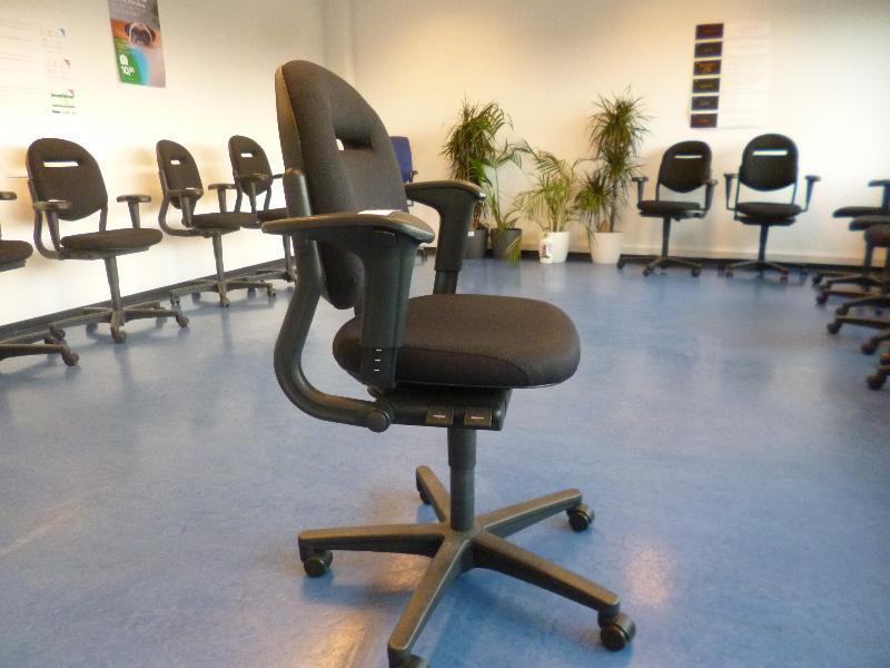 1 Ahrend in hoogte verstelbare bureaustoel met zwarte stoffering en 2 armleggers