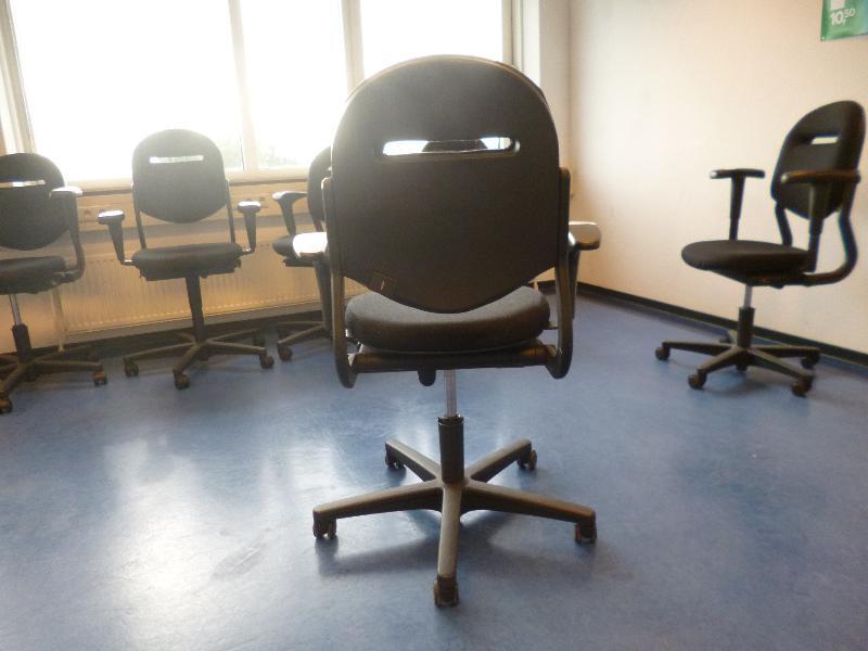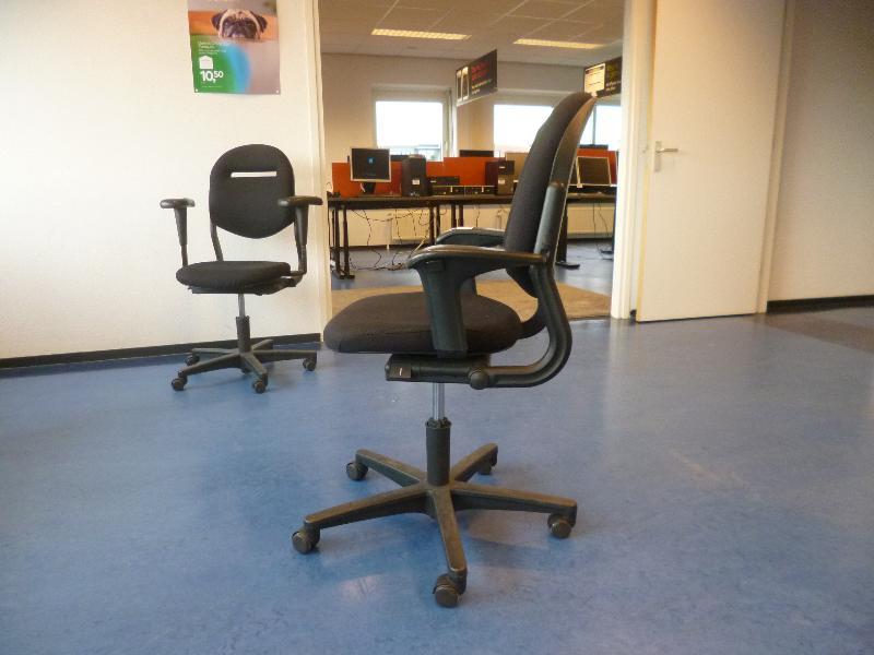 1 Ahrend in hoogte verstelbare bureaustoel met zwarte stoffering en 2 armleggers
