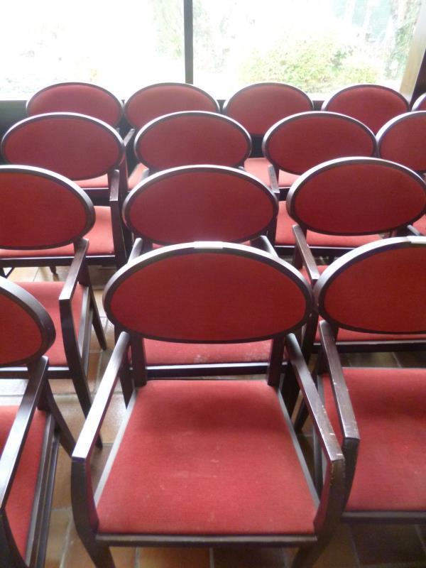 85 - 70 : 4 houten armstoelen met gestoffeerde zitting