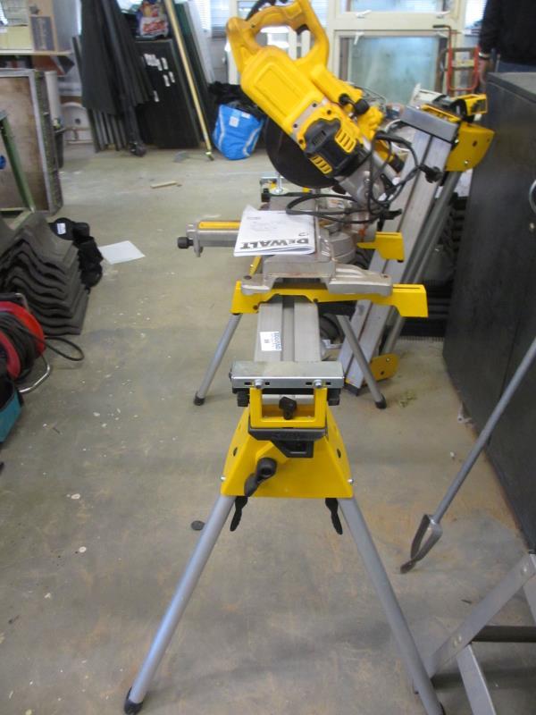 1 DeWalt afkortzaag, type DWS 774 op DeWalt onderstel, type DE7033