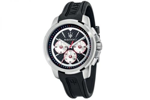 1 Maserati Sfida Chronograph | R8851123001,. Dit 44mm horloge is voorzien van een edelstalen kast met een dikte van 11mm. De Maserati R8851123001 heeft een sportief rubberen bandje met een aanzetmaat van 20mm. De wijzers en indexen zijn zilverkleurig. Dit Maserati horloge is voorzien van een kwalitatief hoogwaardig Seiko uurwerk met een chronograaffunctie. Het horloge is voorzien van gehard mineraalglas en de waterbestendigheid bedraagt 5 ATM, adviesverkoopprijs € 149