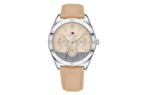 1 Tommy Hilfiger Gracie | TH1781886, Elegant dameshorloge, Dag-, datum-, en 24-uurs-aanduiding, Zalmroze lederen horlogeband,adviesverkoopprijs € 159