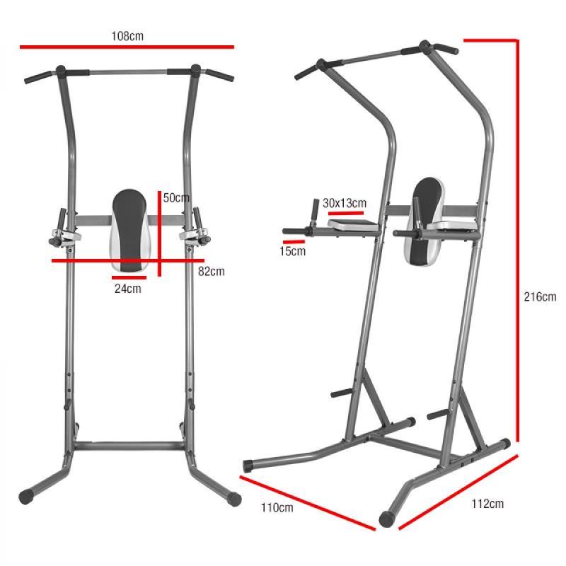 Product Power Tower Deluxe ✔ Thuis trainen, voor old school bovenlichaam trainingen ✔ Ontwikkel een geweldige rug en biceps door pull ups ✔ Train je borstspieren en triceps met dips ✔ Krijg een steenharde sixpack en focus op de onderbuikspieren met legraises ✔ Prikkel je spieren met je eigen bodyweight ✔ Geen duur sportschoollidmaatschap nodig Afmetingen (L x B x H) 112 x 110 x 216 cm Maximaal gebruikersgewicht 113 kg Max. belasting optrekstang 113 kg Max. belasting dipsteunen 113 kg