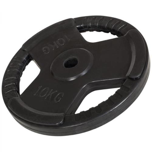 Kwaliteit Hoge kwaliteit gietijzer met rubber coating Gebruik Voor professioneel gebruik, extreem hoge kwaliteit Gewicht 10 kg Bijzonderheid De handige grijpopeningen en de stevige rubber coating zorgen voor hoog gebruikscomfort; bovendien worden blessures aan vingertoppen voorkomen Kleur Zwart Afmetingen Doorsnede 34 cm, dikte 4 cm, geschikt voor 30/31 mm halterstang Gewichtsaanduiding Ja