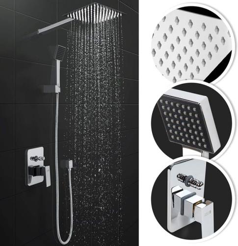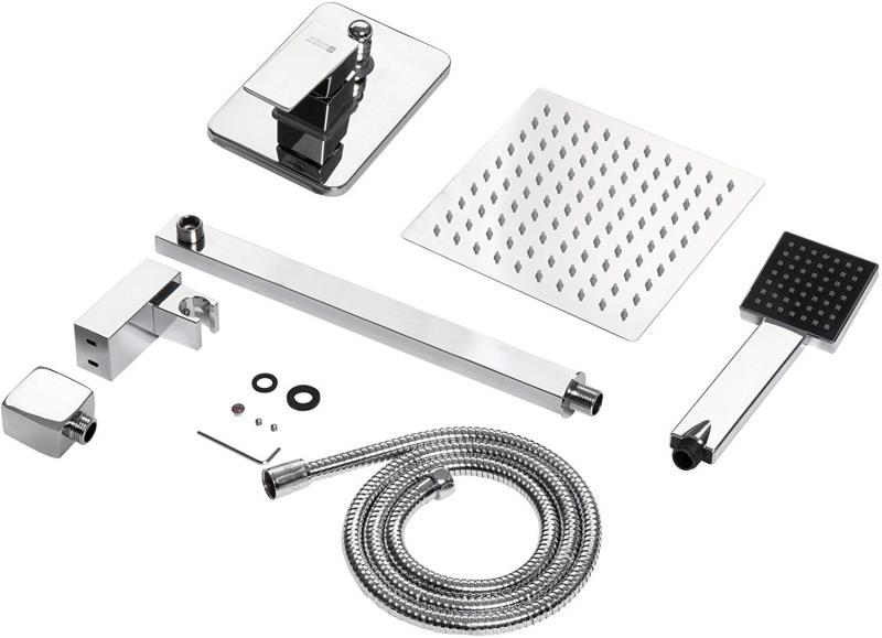 107 - 41 : Compleet set inbouw Regendouche douchesysteem WELLNESS hoekig of rond incl. hoofddouche, handdouche, slang