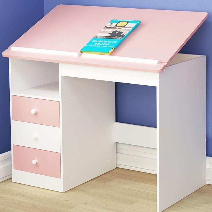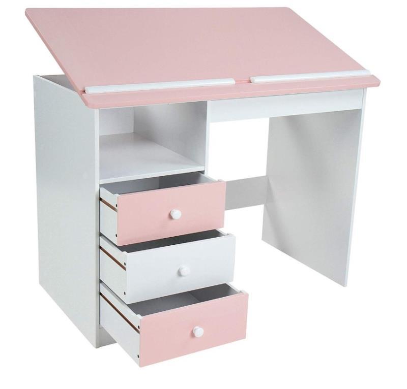 107 - 56 : Kinderbureau - schrijftafel - verstelbaar - roze wit