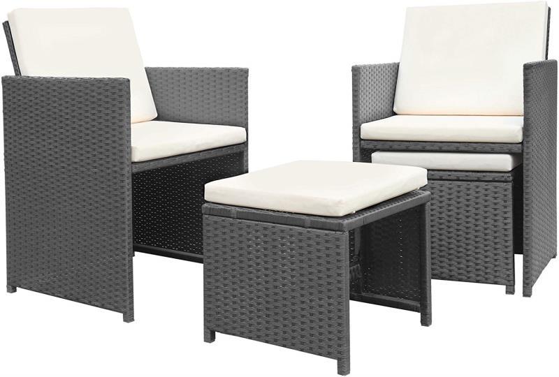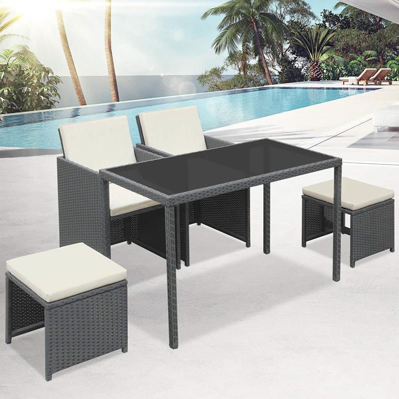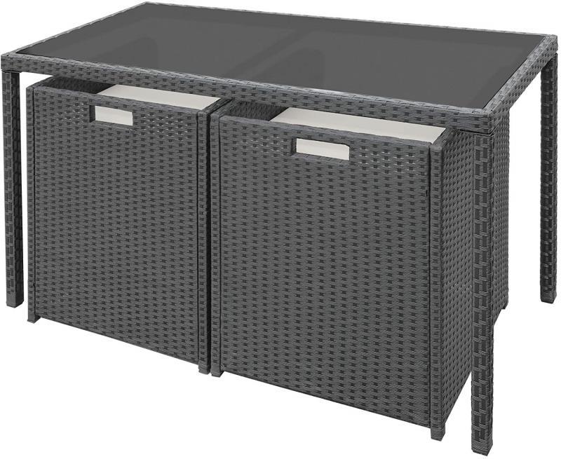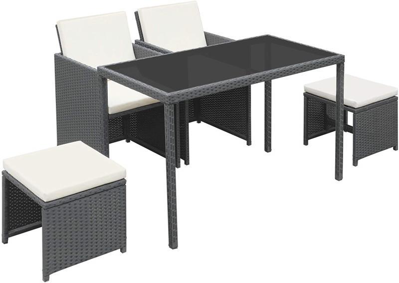 107 - 137 : Polyrotan eettafel zitgroep tuinmeubelen 5-delig in de Kleur grijs