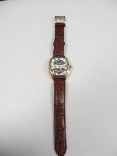 * Stijvolle ovale kast * Indrukwekkende skeleton wijzerplaat * Automatisch uurwerk * Klassieke lederen band