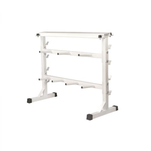 " Professionele standaard voor halterschijven en halterstangen Materiaal Staal Kleur Wit Gewicht 30 kg Afmetingen (L x B x H) 120 x 50 x 96 cm Max. belasting 400 kg Max. belasting per laag Bovenkant 200 kg, midden- en onderkant 100 kg ✔ Geschikt voor halterschijven met opening 30/31 mm en stangen met doorsnede 30/31 mm ✔ Zeven stangen (lengte 20 cm) voor ophangen gewichtschijven tot 20 kg met maximale doorsnede 25 cm (in geval naast elkaar opgehangen) ✔ Exclusief halterschijven en halterstangen "