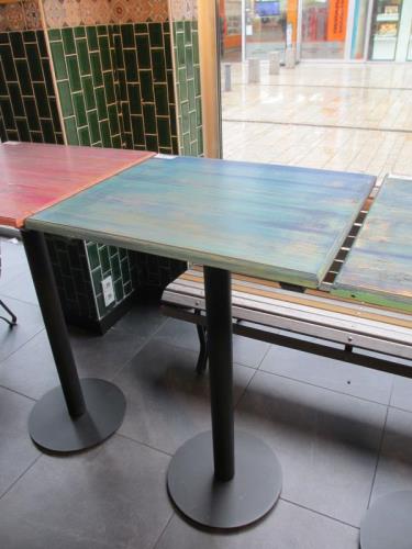 - 1 hoge tafel met blad, blauw, 60 x 65 cm.