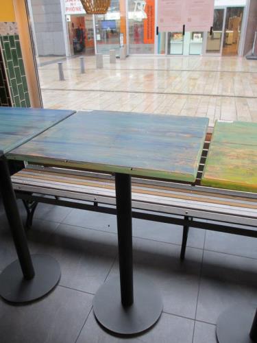 - 1 hoge tafel met blad, blauw, 60 x 65 cm.