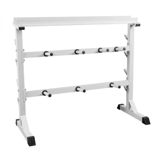 Dit professionele standaard voor halterschijven en halterstangen is gemaakt van staal, weegt 30 kg en is maximaal belastbaar tot 400 kg. De bovenkant is belastbaar tot 200 kg en de midden- en onderkant zijn belastbaar tot 100 kg. Het standaard is geschikt voor het opbergen van halterstangen met een doorsnede van 30/31 mm en halterschijven met een opening van 30/31 mm. Het product is exclusief halterstangen en schijven.
