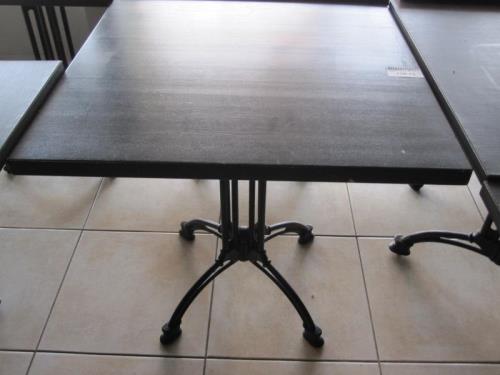 138 - 13 : 1 vierkante houten restauranttafel met metalen onderstel