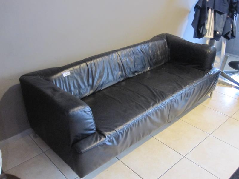 138 - 63 : 1 lederbeklede 3-zits bank, zwart