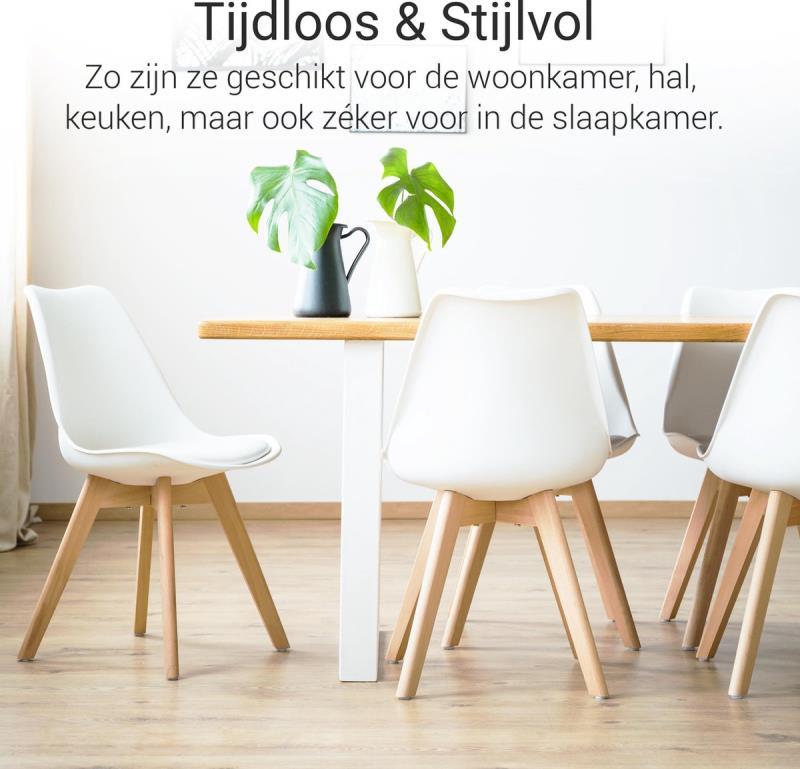De moderne, skandinavische eetkamerstoelen hebben een zachte, tulpvormige zitting en beugenhouten poten. Ze zijn eenvoudig te monteren en kunnen worden gebruikt voor privé én commerciele doeleinden.