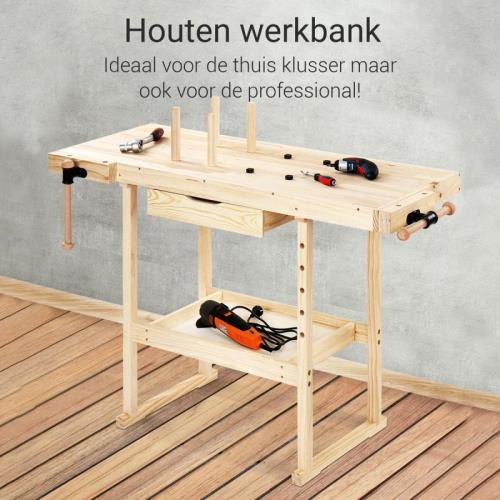 Deze houten werkbank is ideaal voor de thuis klusser maar ook voor de professional! Of je nou gaat boren, hameren, klinken, solderen of schrapen, deze werktafel kan je voor iedere klus gebruiken.