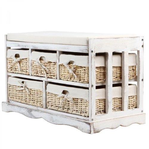185 - 91 : Dressoir, halbankje, opbergbankje, rieten mandjes, ladekast