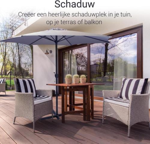 De ideale parasol om onbezorgd te genieten van de zon tijdens warme lente- en zomerdagen. Het polyester doek is voorzien van een coating en is zonnewerend.