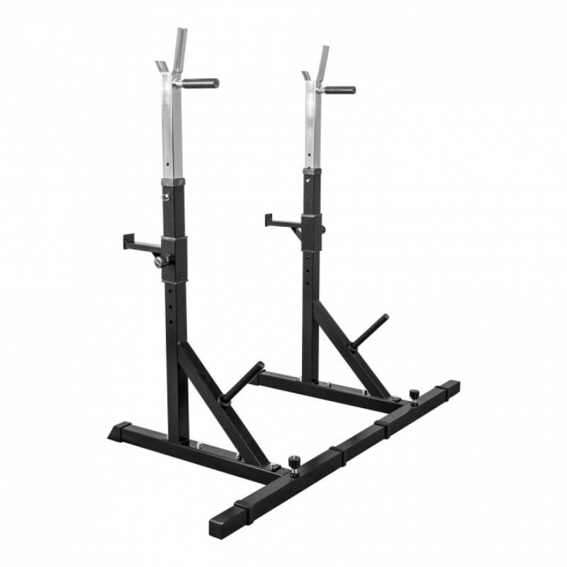 Dit Verstelbare Rack is ideaal om thuis veilig te kunnen bankdrukken en squatten. Ook is het dankzij de dipsteunen mogelijk om dips uit te voeren. De bovenste haltersteunen zijn max. belastbaar tot 200 kg en de onderste haltersteunen zijn max. te belasten tot 250 kg.