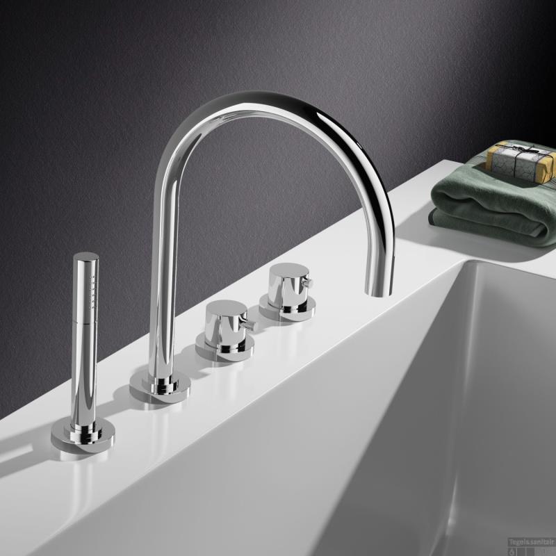 Winkelverkoopprijs € 1750 Hotbath Buddy thermostatische 4-gats badrandkraan met uitloop, chroom
