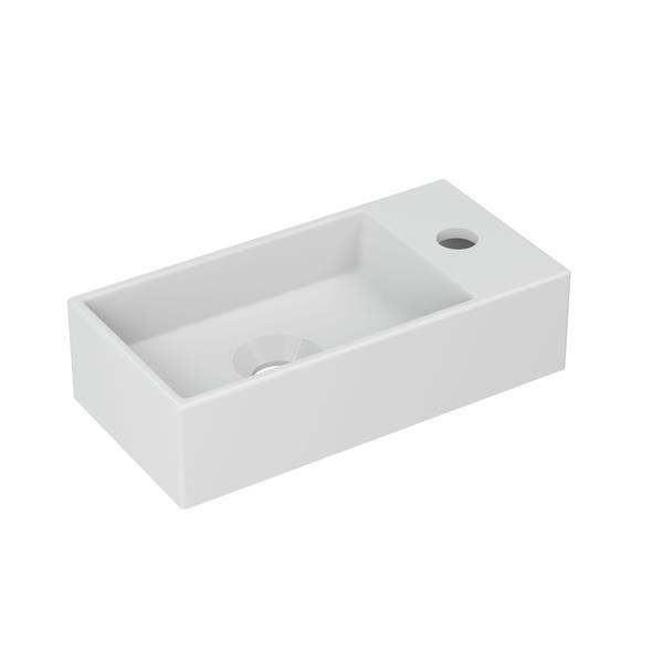 243 - 328 : INK® Versus porseleinen fontein met kraangat en afzetplateau rechts 36 x 9 x 18 cm, mat wit
