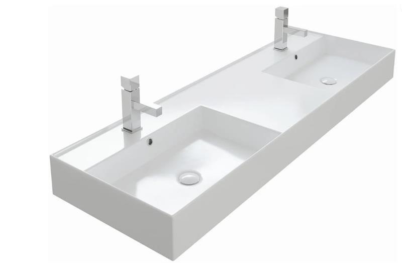 243 - 349 : Thebalux Twenty wastafel keramiek met dubbele kom met kraangat 140 cm, wit glans glans
