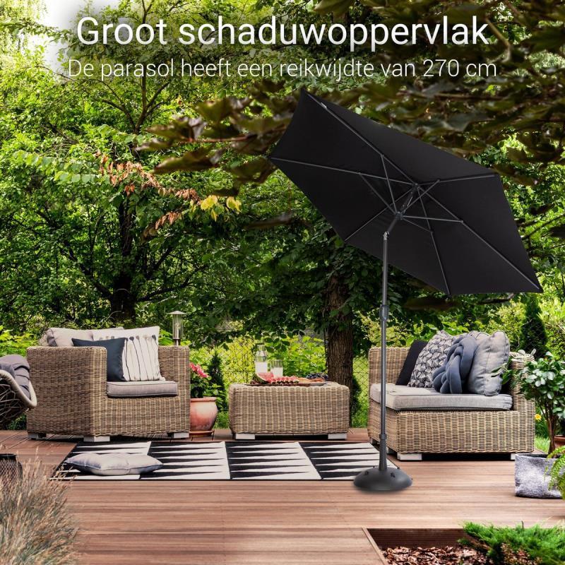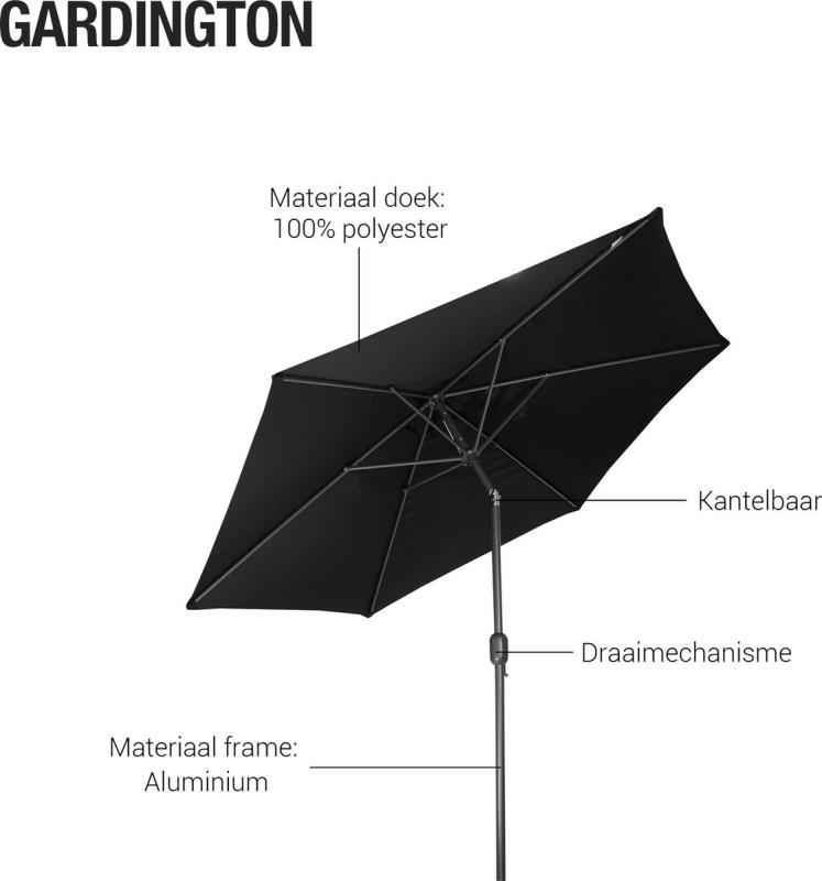 244 - 124 : Gardington Parasol – 270 cm – Aluminium – Zwart - Kantelbaar