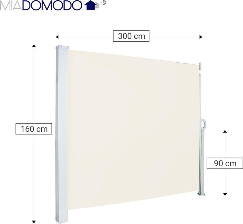 244 - 140 : Miadomodo Windscherm Uittrekbaar –160cm (hoogte) X 300cm (lengte) – Crème