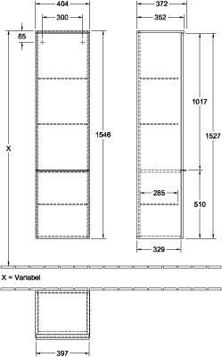 249 - 36 : Villeroy en Boch Venticello hoge kast met 1 deur 154.6x40.4x37.2cm rechts glans wit
