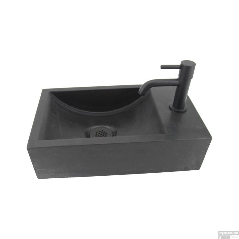 249 - 374 : L'Aqua Werner natuurstenen fonteinset inclusief wit éénhendelkraan en sifon 40 x 23 x 11 cm