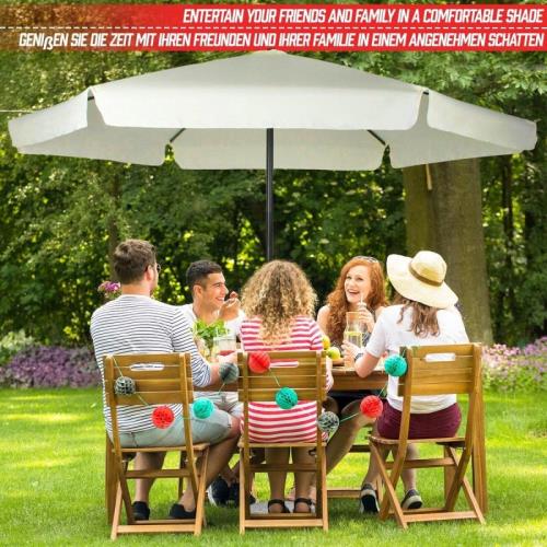 Deze brede parasol kan een hele tafel overschaduwen. Hij is eenvoudig te monteren en demonteren, waardoor het de ideale oplossing is voor elke tuin of terras. Wanneer niet in gebruik, kan deze gemakkelijk worden opgevouwen en opgeborgen. Bescherm jezelf deze zomer met een parasol!