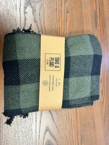 292 - 34 : 5x Take a Plaid gerecycled katoen legergroen 125 x 150 cm