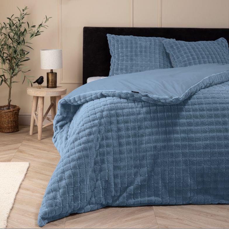 312 - 36 : dekbedovertrek 140x220 Square teddy moonlight blue