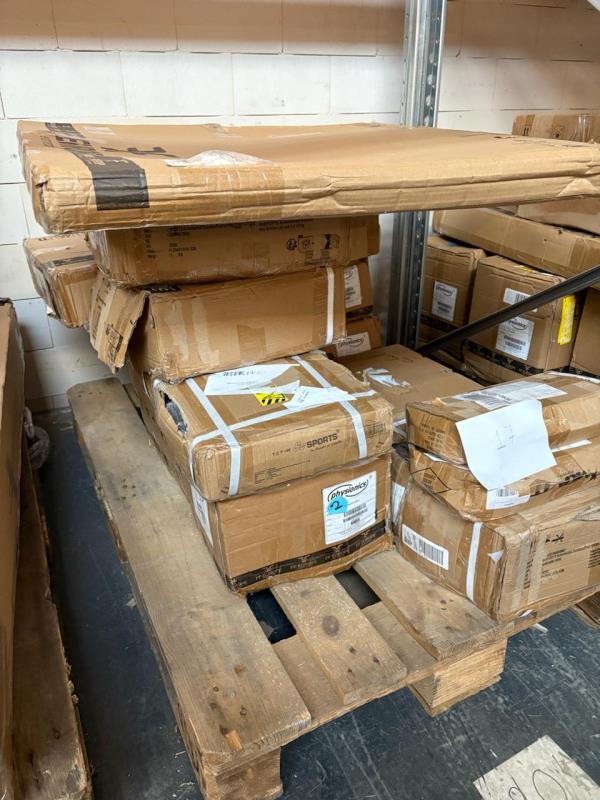 Online veiling van pallets met fitnessartikelen w.o. zwaartekrachttrainers, halterstangen, optrekstangen, yogamatten, dumbells etc.