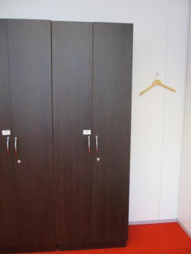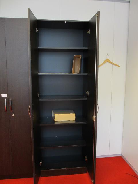 1 hoge houten 2-deurs kast (afm. ca. 75 x 230 x 40)