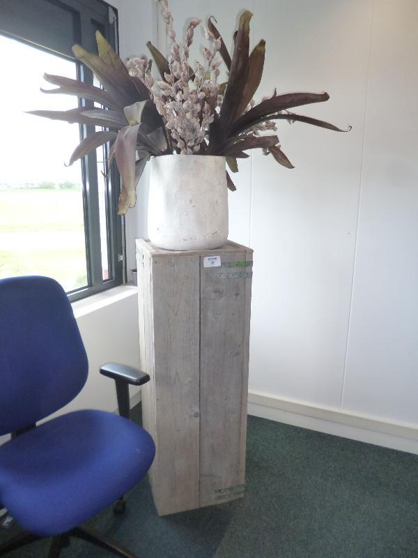 1 houten sokkel met kunstplant in pot