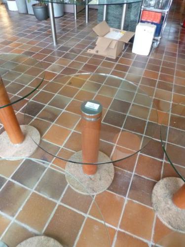 85 - 61 : 1 salontafel met glazen blad en marmeren voet