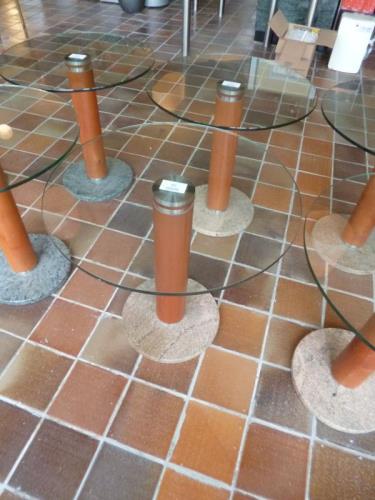 85 - 64 : 1 salontafel met glazen blad en marmeren voet