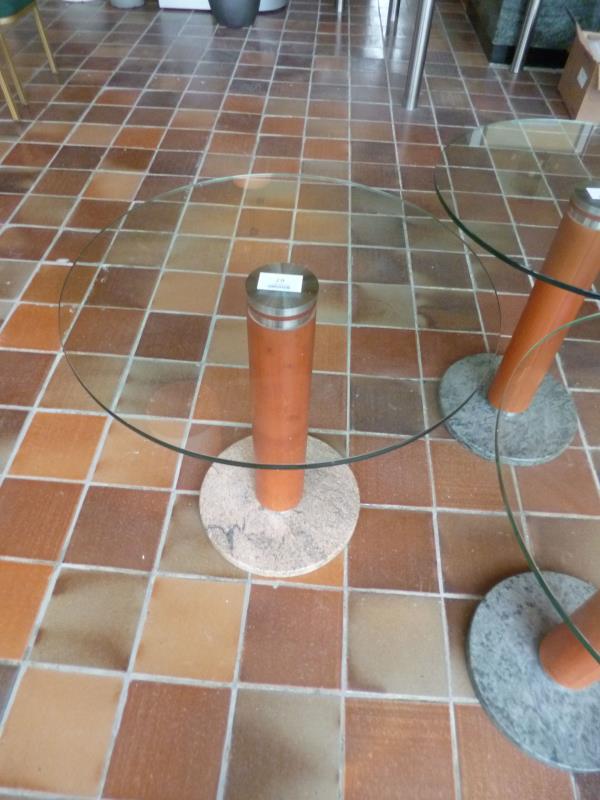 85 - 67 : 1 salontafel met glazen blad en marmeren voet
