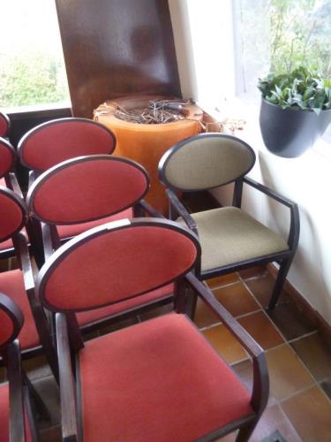 85 - 75 : 4 houten armstoelen met gestoffeerde zitting