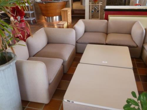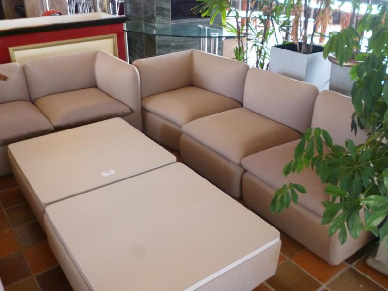 85 - 100 : 1 7-delige gestoffeerde zithoek met 2 tafels